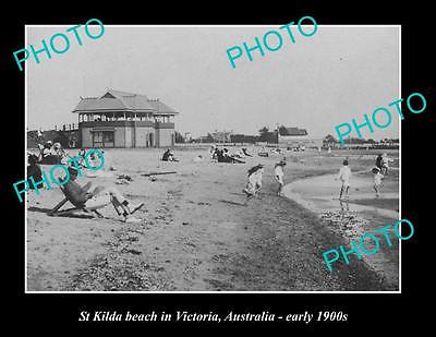 OLD LARGE HISTORIC PHOTO OF St KILDA BEACH, MELBOURNE VICTORIA ca1900