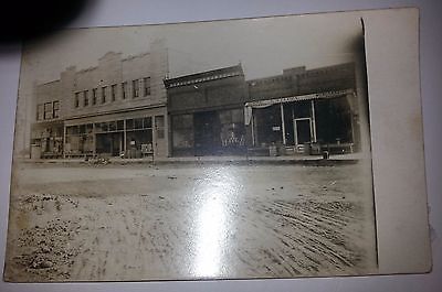 RPPC ROCKTON IL VGC Store fronts, wooden barrels, bicycle, dirt streets