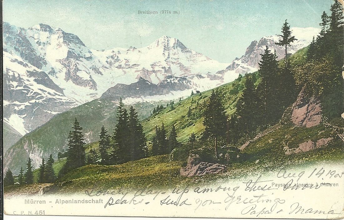 Title (ebay affiliate link): ANTIQUE 1904-05 POSTCARD - ALPINE LANDSCAPE & MURREN, BREITHORN PEAK SWITZERLAND
