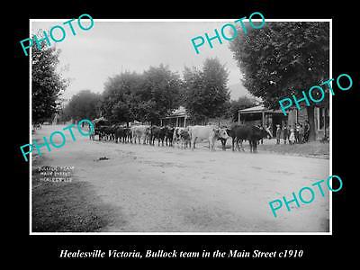 OLD LARGE HISTORIC PHOTO OF HEALESVILLE VIC, BULLOCK TEAM IN MAIN STREET c1910