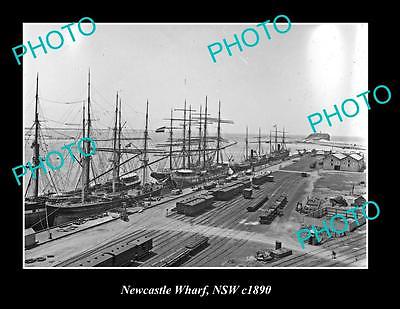 OLD LARGE HISTORIC PHOTO OF NEWCASTLE NSW, SHIPS AT WHARF c1890