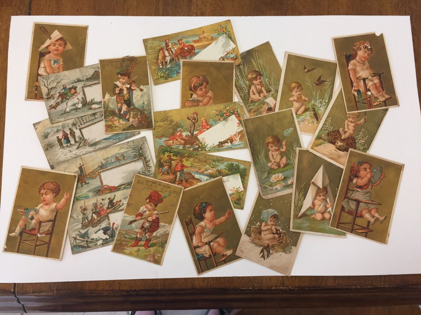 Lot of Metallic Backed Victorian Trade Cards
