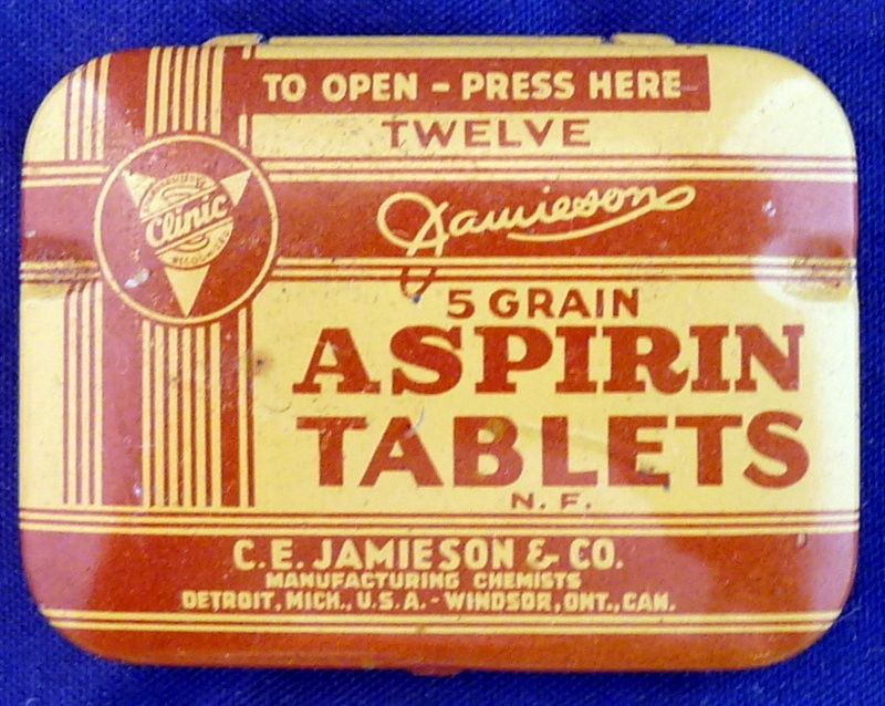 Title (ebay affiliate link): Vintage Advertising Tablets Medicine Tin ASPIRIN Jamieson, Detroit 5 Grain