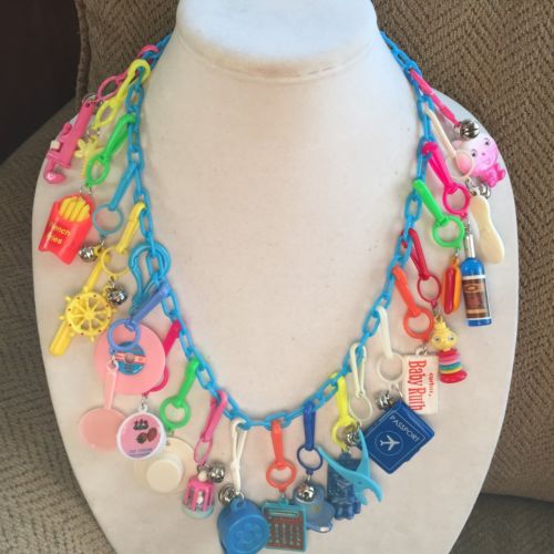 Title (ebay affiliate link): Vintage New Plastic 80's Bell Charm Necklace Retro Clip On 1980's Party Fun 22