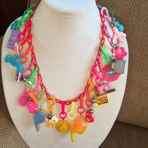 Title (ebay affiliate link): Vintage New Plastic 80's Bell Charm Necklace Retro Clip On 1980's Party Fun 22