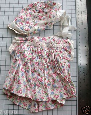 ANTIQUE DOLL CLOTHING DRESS & BONNET ROSE PRINT LOT