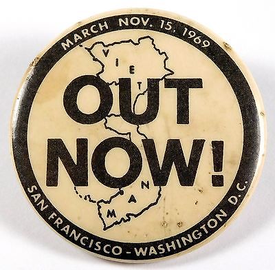 Title (ebay affiliate link): 1969 Anti-Vietnam War "OUT NOW!" Protest March Pinback Button