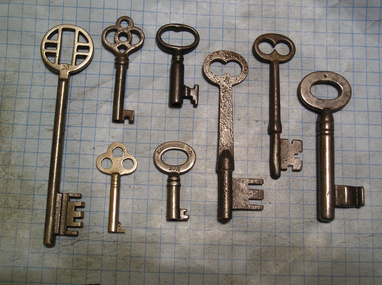 Title (ebay affiliate link): LOT OF 8 ANTIQUE SKELETON, FURNITURE, BARREL, CABINET AND OLD LOCK KEYS