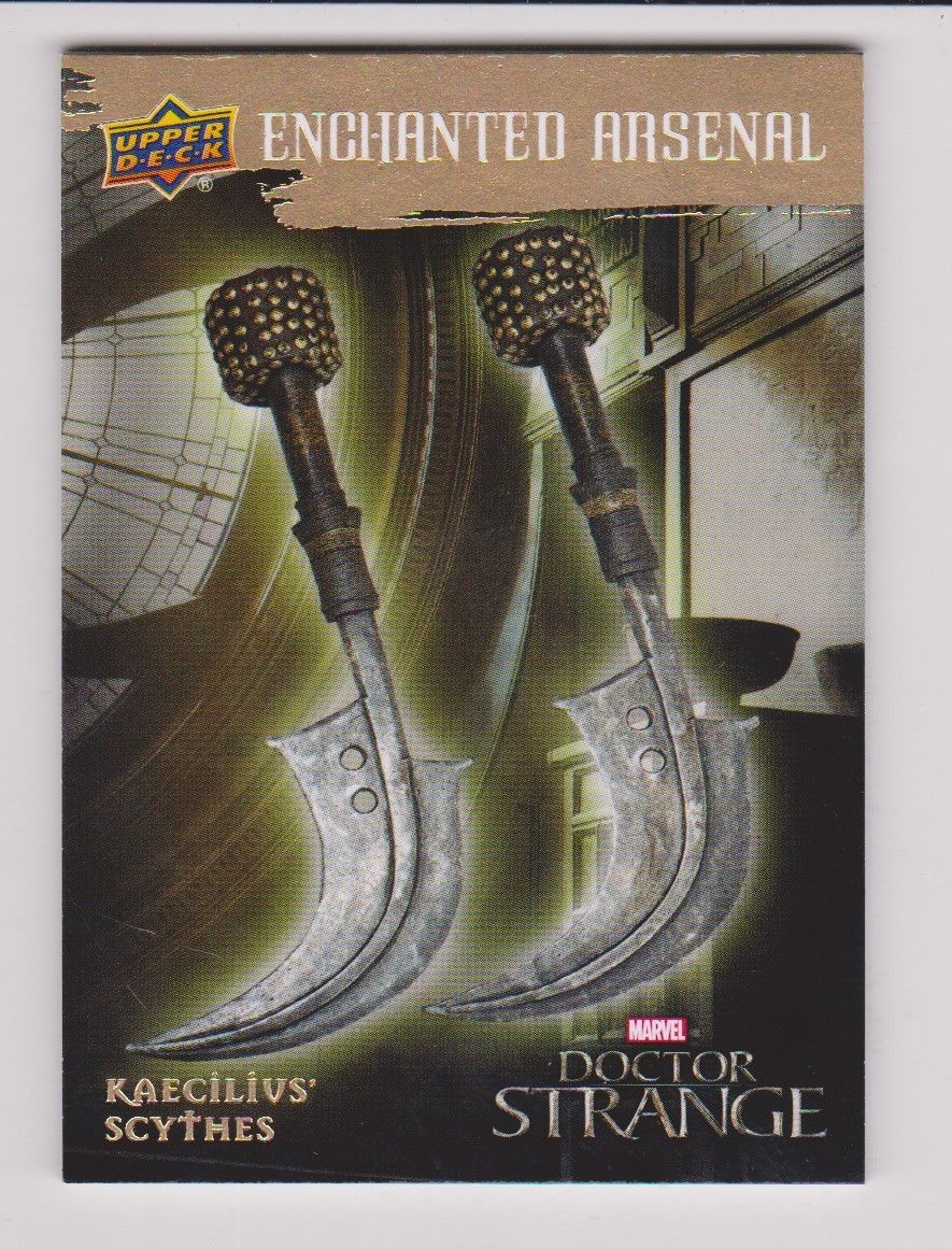 Title (ebay affiliate link): KAECILIUS' SCYTHES 2016 UD MARVEL DOCTOR STRANGE ENCHANTED ARSENAL CARD #D 51/99