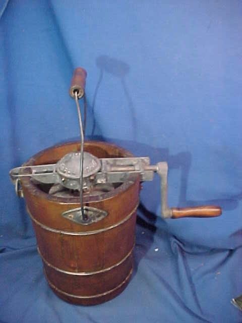 Title (ebay affiliate link): 1913 WOOD + METAL 1 Qt BLUE GRASS Brand Hand Crank ICE CREAM MAKER