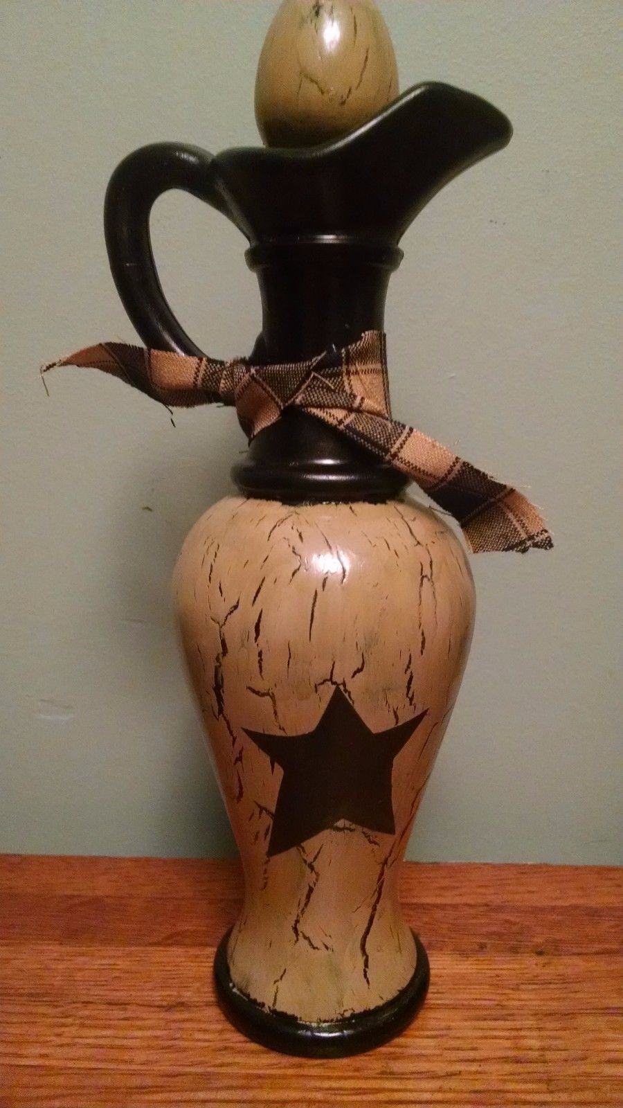 Title (ebay affiliate link): Primitive Crackled Old Bottle Country Tan/Black Farmhouse Decor