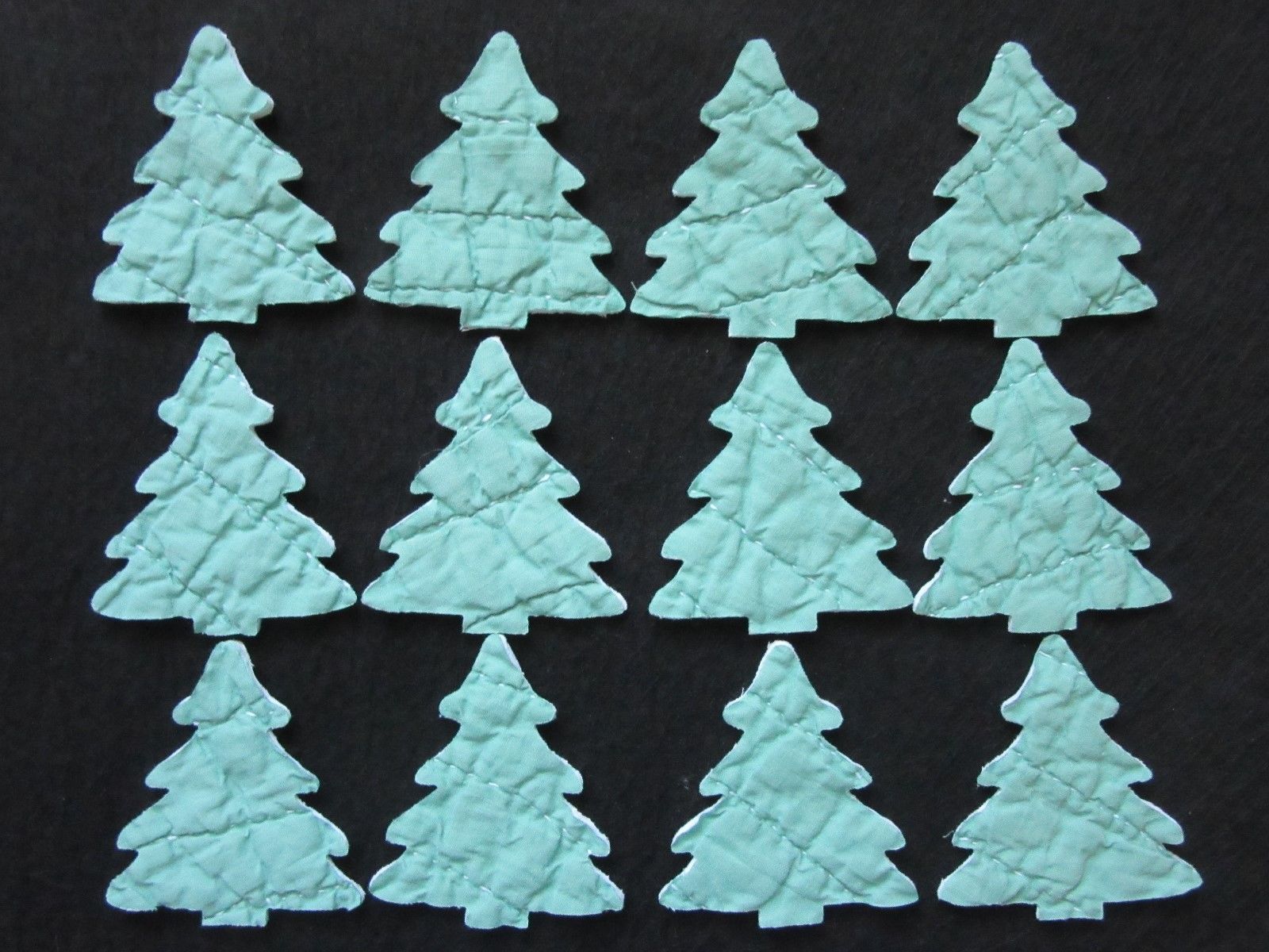 Title (ebay affiliate link): 12 PRIMITIVE CUTTER QUILT GREEN CHRISTMAS TREES -APPLIQUES!- ORNAMENTS