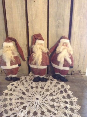 Title (ebay affiliate link): 3 Primitive Grungy Santa Ornies Christmas Folk Art