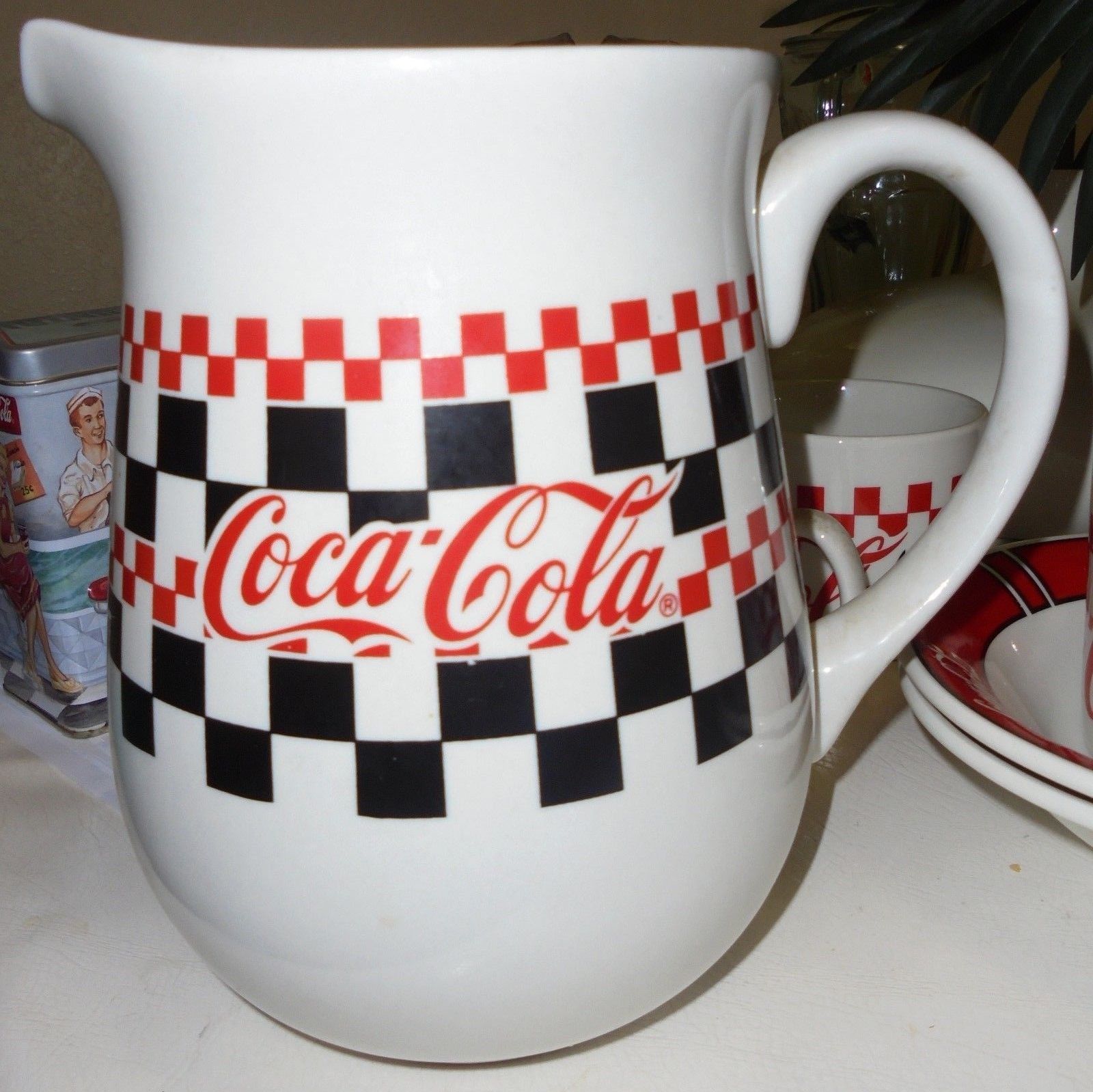 Title (ebay affiliate link): HEAVY POTTERY COCA COLA PITCHER BY GIBSON - W/ CHECKERED DESIGN
