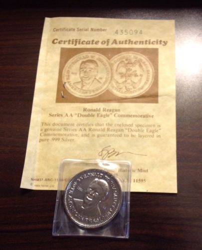 Title (ebay affiliate link): 1984 Ronald Reagan Series AA Double Eagle Commemorative Coin - w/COA