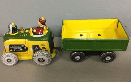Vintage Reproduction Wind Up European Tractor With Wagon