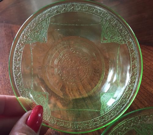 Title (ebay affiliate link): 2 Green Depression Glass Bowls Draped Lace Pattern - Vintage