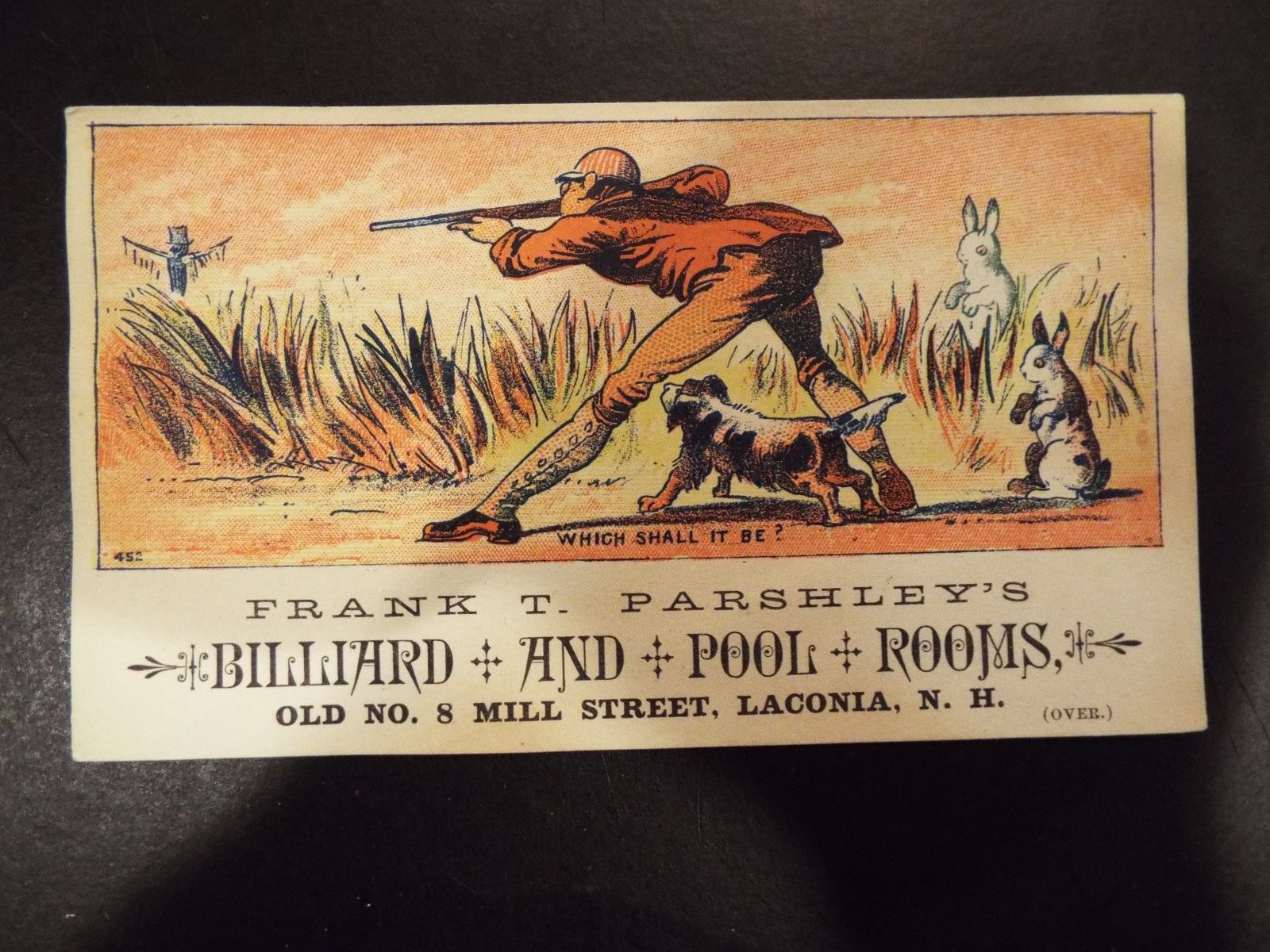 Title (ebay affiliate link): Frank T. Parshley's Billiard & Pool Rooms Victorian Trade Card