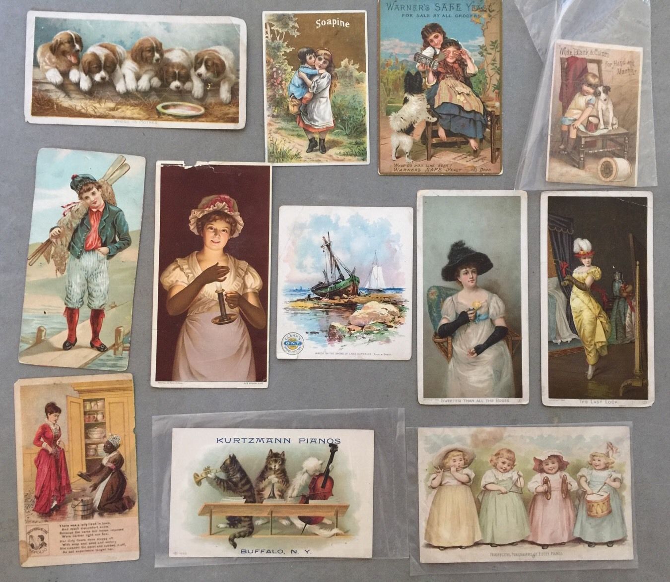 Lot 12 ANTQ Advertising Trade Cards, Coates, Pianos, Candles, Soap, Tobacco