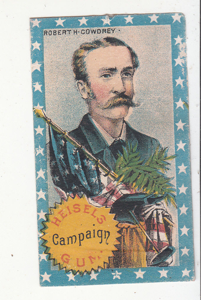 Title (ebay affiliate link): Heisels Campaign Gum ROBERT H COWDREY Ameican Flag Vict Card c1880s