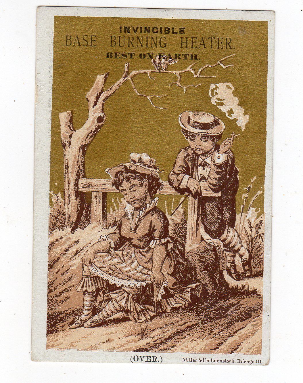 Title (ebay affiliate link): VICTORIAN TRADE CARD INVINCIBLE BASE BURNING HEATER WM. DONALDSON BUFFALO NY