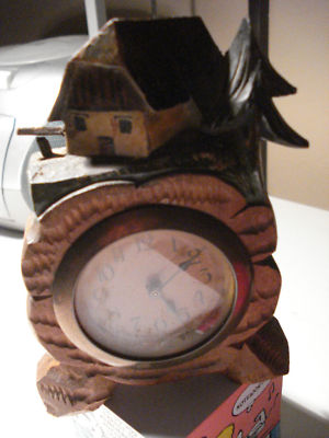 OLD ANTIQUE HAND CARVED WOOD CLOCK GERMANY