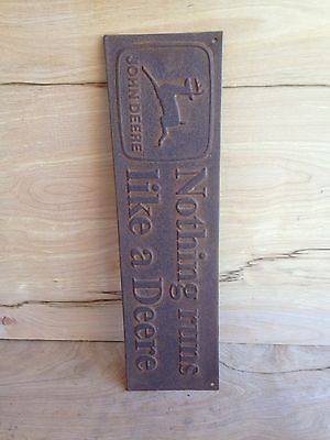 VINTAGE JOHN DEERE EMBOSSED METAL JD SALES OLD SHOP ADVERTISING DISPLAY SIGNN NR
