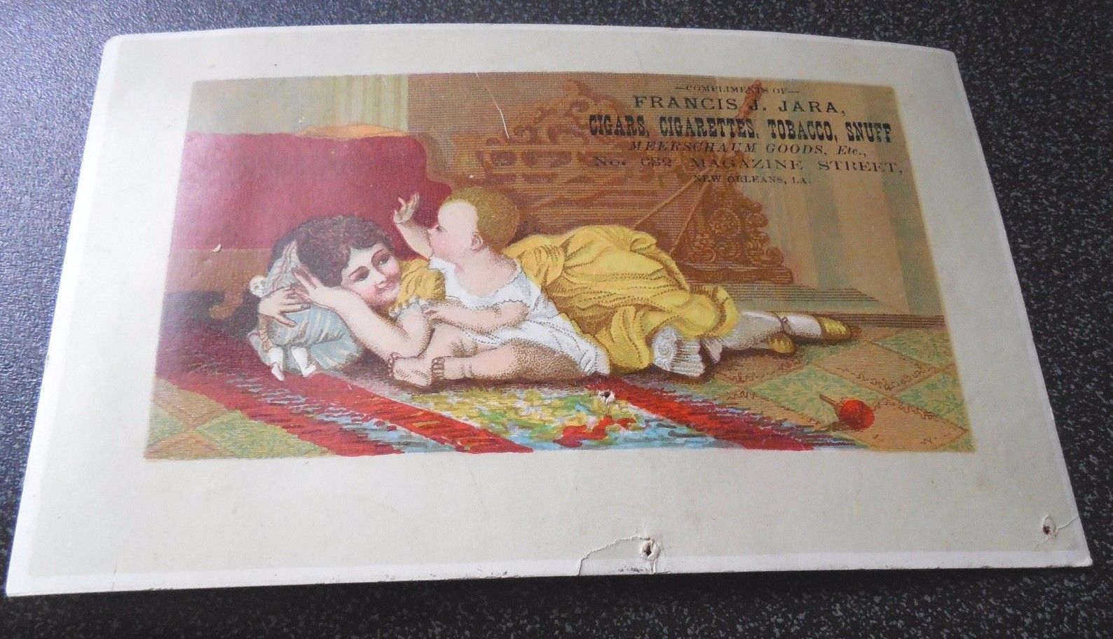 Title (ebay affiliate link): VICTORIAN TRADE CARD - FRANCIS JARA CIGARS, CIGARETTES, TOBACCO - NEW ORLEANS LA