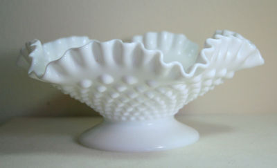 Milk Glass Hobnail Ruffled Pedestal Base Bowl