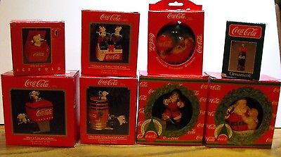 Title (ebay affiliate link): Lot of 8 Vintage ENESCO Trim-A-Tree COKE COCA COLA Christmas Ornaments used/new