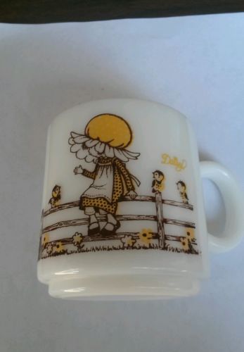 Title (ebay affiliate link): Hazel Atlas Kirby Martin Daisy Yellow Bonnet Girl Milk Glass Cup