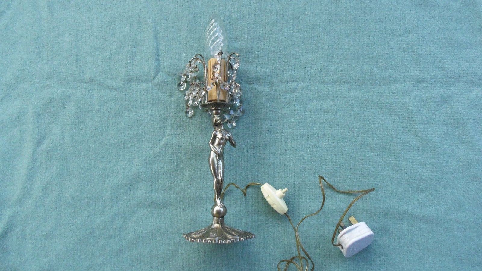 Title (ebay affiliate link): VINTAGE ITALIAN 1960/70's NUDE APHRODITE CANDLE TABLE LAMP WITH HANGING LUSTRES