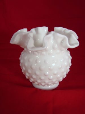 Vintage FENTON Hobnail Ball Vase White Milk Glass *MINT