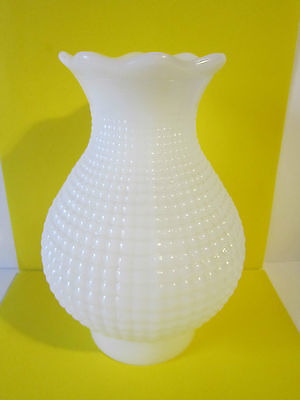 vintage milk glass hobnail globe shade chimney scalloped top 7"