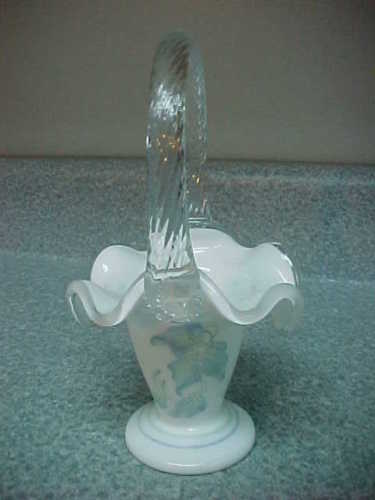 FENTON 'MORNING MIST' pattern MILK GLASS BASKET