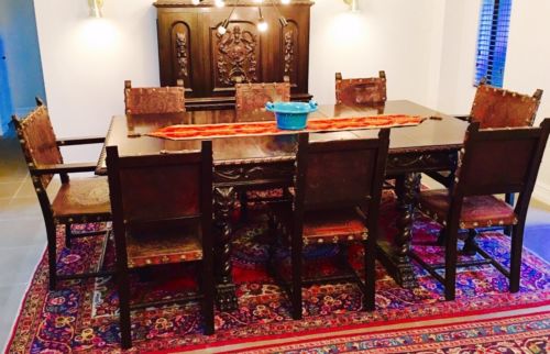 Title (ebay affiliate link): Extraordinary Antique Mediterranean Dining Room Set, Table, 8 Chairs, Cabinet!