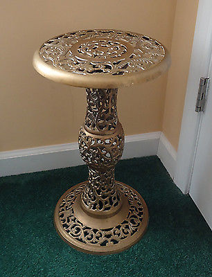Vintage Hollywood Regency Ornate Brass Pedestal Side Table/Plant Stand 19" Tall