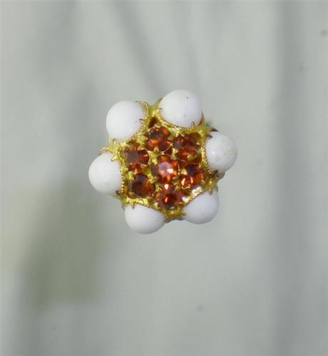 AMBER RHINESTONE AND MILK GLASS HATPIN