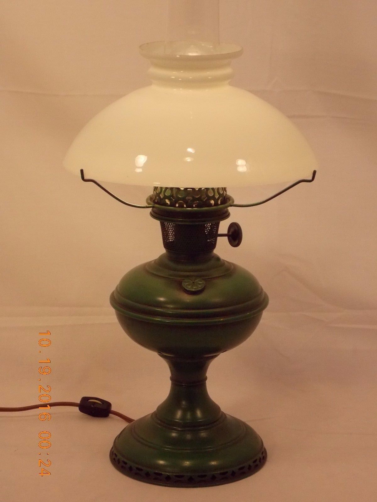 Title (ebay affiliate link): VINTAGE OIL LAMP ELECTRIFIED GREEN MILK GLASS HURRICANE ALADDIN MODEL NO 6
