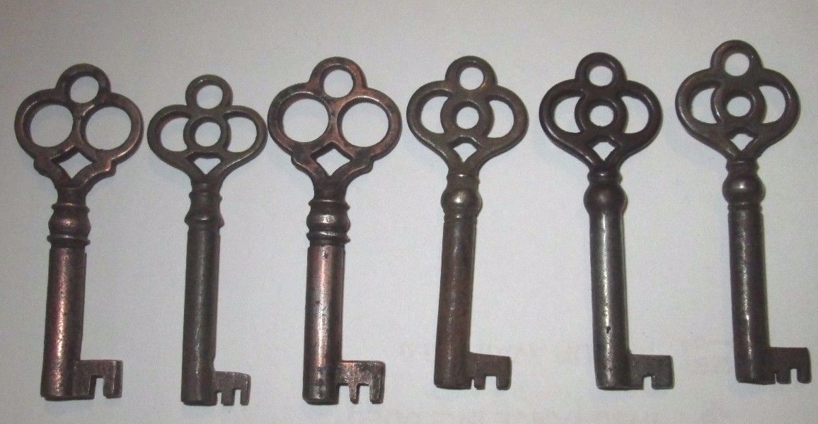 Title (ebay affiliate link): LOT OF 6 VINTAGE OPEN BARREL BOW SKELETON KEYS CABINET FURNITURE ANTIQUE KEY