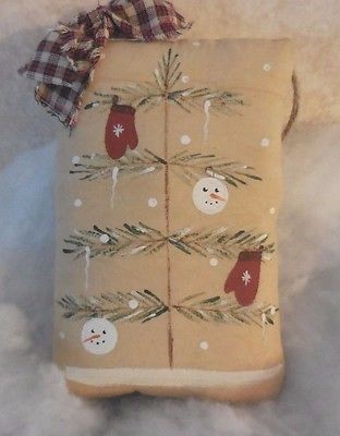 Title (ebay affiliate link): Primitive Folk Art Christmas Tree Pillow Ornament Handpainted Mittens Snowmen