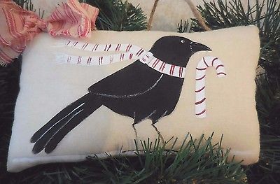 Title (ebay affiliate link): Primitive Folk Art Christmas Crow Candy Cane Pillow Tuck Handpainted Wallhanging