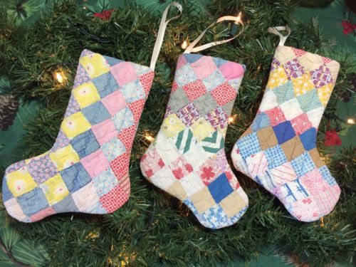 Title (ebay affiliate link): Vintage Quilt Christmas Stocking Ornaments - Primitive - Postage Stamp #144