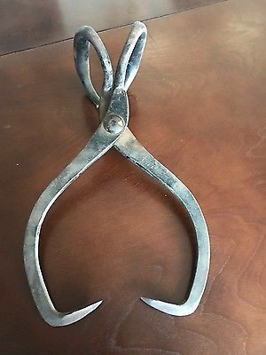 LARGE ANTIQUE CAST IRON ICE TONGS STAATSBURG