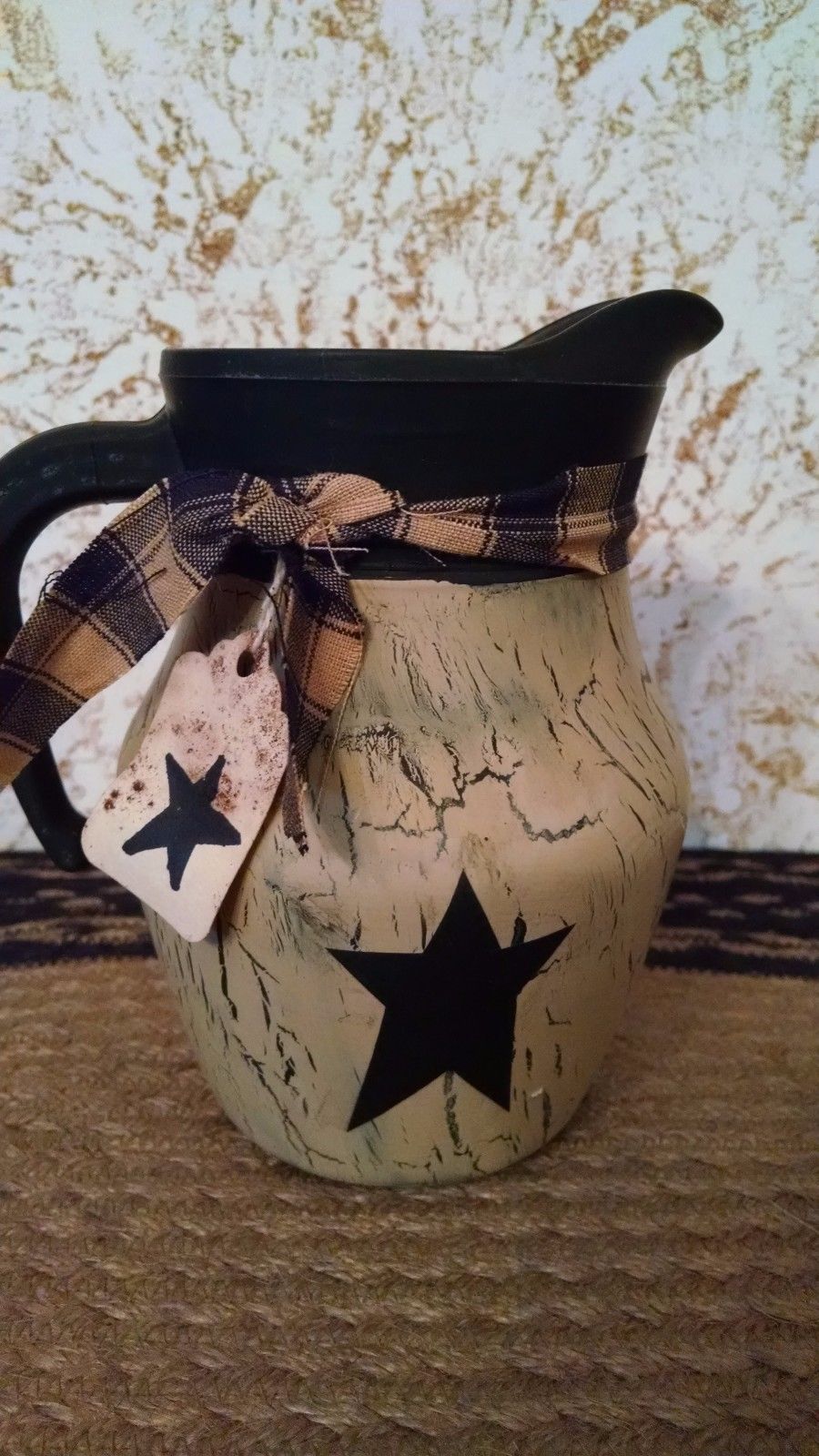 Title (ebay affiliate link): Primitive Crackled Ceramic Pitcher Black/Tan Farmhouse Decor