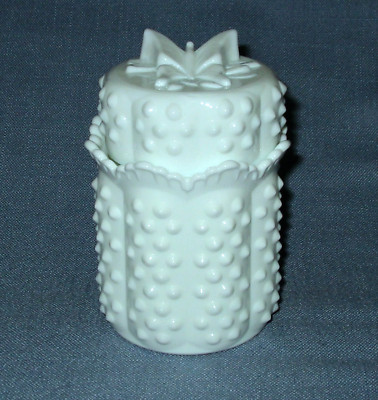 FENTON HOBNAIL MILK GLASS CANDY JAR BUTTERFLY LID