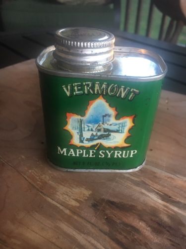 Title (ebay affiliate link): Vintage State of Vermont Pure Maple Syrup 8oz Advertisement Tin Can Container