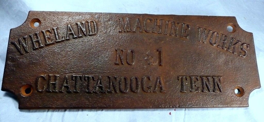 Title (ebay affiliate link): Antique "WHELAND MACHINE WORKS", Chattanooga Tenn. Steam Engine Plaque Sign
