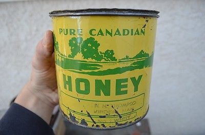 Title (ebay affiliate link): Vintage Pure Canadian Virden Manitoba Honey tin 4 lbs Rare Bee Advertising Can