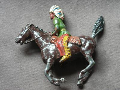 Title (ebay affiliate link): VINTAGE METAL TOY FIGURE INDIAN RIDING A BROWN HORSE